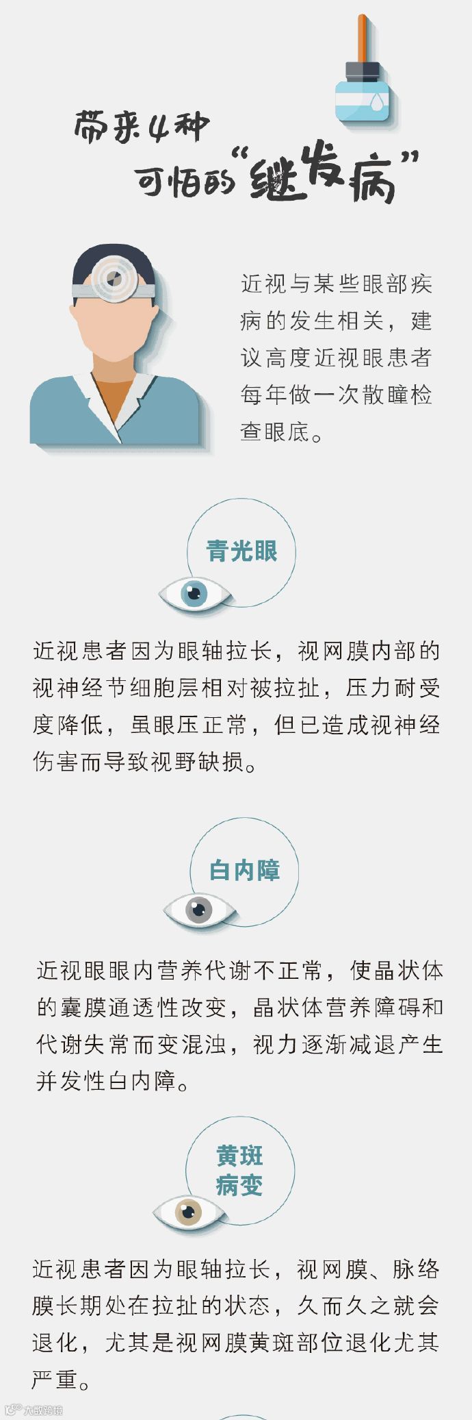 【一份眼科专家推荐的护眼攻略】三米开外朦胧不清,十米外六亲不认,百米外人畜不分……世卫组织研究报告指出,我国近视患者高达6亿人。不分时间、地点刷手机,导致眼睛干涩,近视度数越来越深。除了让你的世界越来越模糊,近视还会带来这些可怕的“继发病”↓