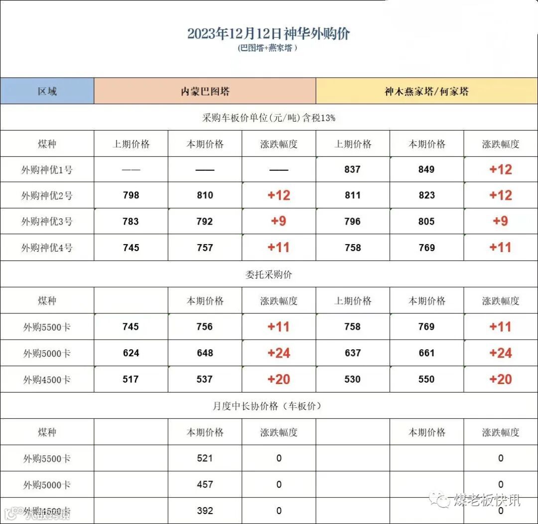 截止12月13日上午,据追踪的主流煤矿来看,价格变动煤矿不足10家(含榆神、府谷、横山、内蒙):其中2家上涨(单一面煤)10元/吨;4家下跌(籽、块、原煤),跌幅5~29元/吨,仅个别前期生产不稳定且调价周期较缓的煤矿籽、块煤单次补跌达40~60元/吨;榆阳、府谷、横山煤价行情持稳,内蒙区域价格稳中下跌,个别热销大矿亦频繁降价5~10元/吨。大矿竞拍(某大矿混煤起拍价740元,成交均价794元,较上期763元上涨31元;洗中块起拍价860元,成交均价882元,较上期893元下跌11元)及神华外购涨价,暂时对市场行情影响小。