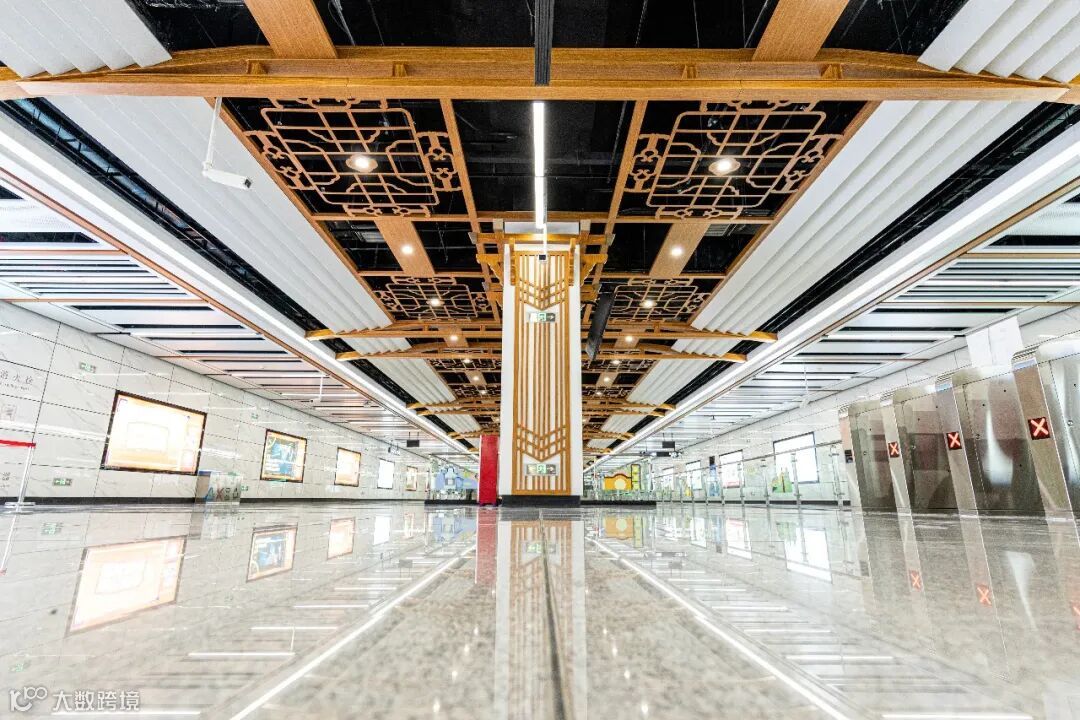 佛山三号线穿越顺德、禅城、南海三区,广州地铁设计研究院以“一线一色·三区一式·数站一景”为设计理念,提取岭南特色文化特征元素对全线进行设计,并根据站点地域特色,首通段共打造了4座文化主题车站。提取各重点站历史文化特征及IP文化特征的元素呈现车站空间效果,文化主题车站装修精美、寓意满满。