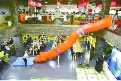 出生于1976年的章燎原,在安徽芜湖市创办了三只松鼠:一家以卖坚果、干果为主的电商公司。三只松鼠这家公司的装修有种奇妙的混搭:既有橙红色的管道滑梯,就像你经常在网上看到的互联网公司装修照片;又四处挂满贴着诸如“百亿梦、幸福梦”口号的红色横幅,这让你想到传统的乡镇企业。