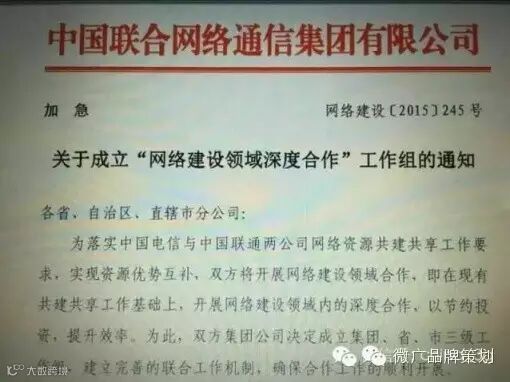 这个文件的主要内容是“关于成立‘网络建设领域深度合作’工作组的通知”,按照此份通知,中国联通将与中国电信在网络建设领域合作,实现资源优势互补,以节约投资提升效率。