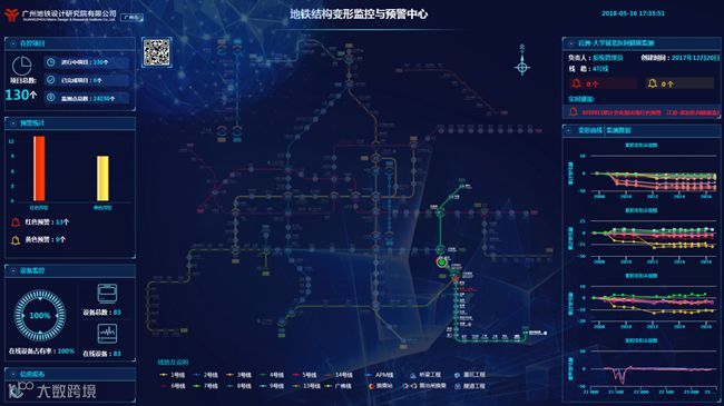 我院研制的“地铁结构变形监控与预警中心”采用信息化技术组建了广州地铁运营线网物联网监控云平台,通过 “一张图”的形式提供了运营线网130个子项、24000多个测点、近20年的数据服务,服务对象涵盖设计院、运营总部、安全监察部、监测单位等,能够实 现与现场传感器、人工监测、测量机器人、手机移动端等的互联互通。平台的应用将很大程度地方便监测管理、运营维养及地铁保护,提升数据的使用价值,提高我 院的监测服务水平。