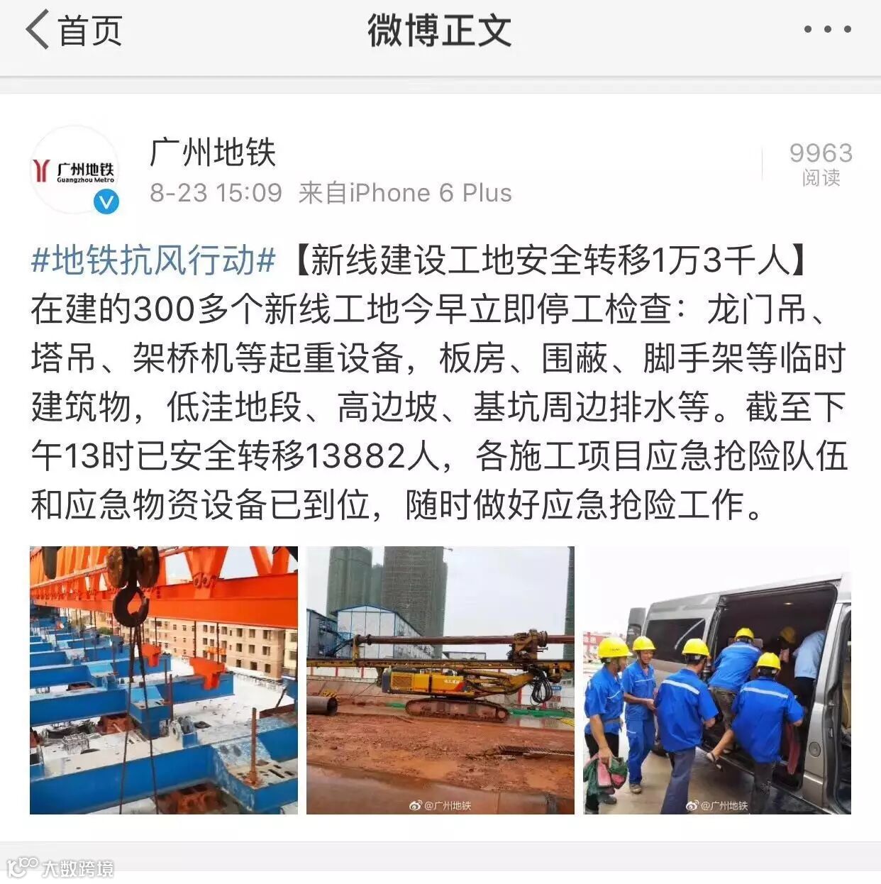 广州地铁设计院党委许少辉书记带队冒着台风赴佛山地铁4号线勘察现场检查防台风工作……