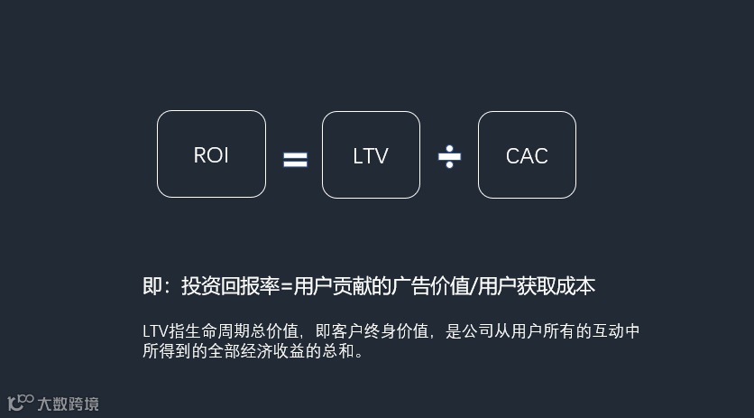 这样就引出了整个投放核心关注的结果指标“ROI”,即投资回报率。