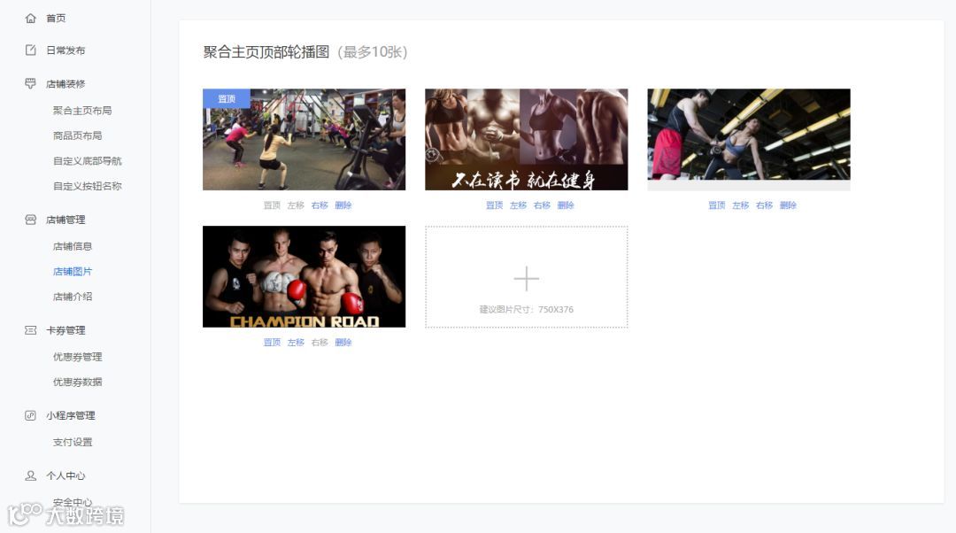 5、优化了「店铺图片」的交互,增加了移动和置顶的操作