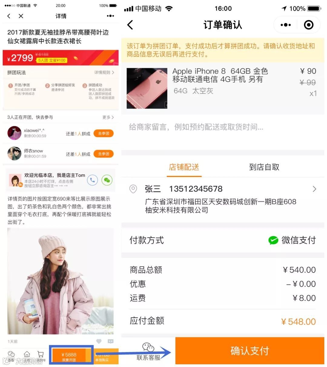 2、必须先支付,才参团成功;