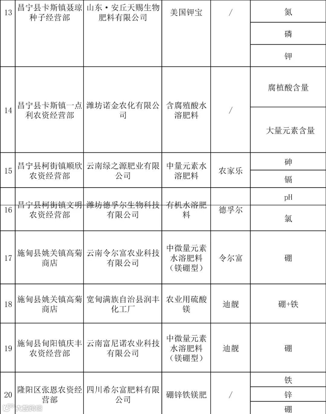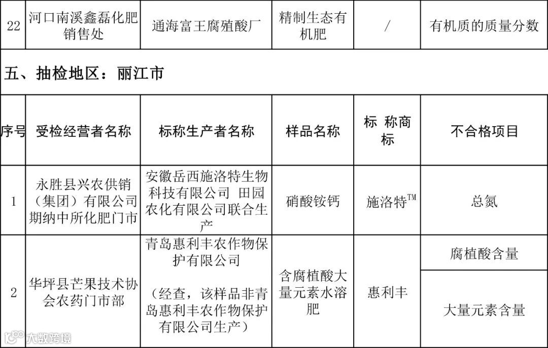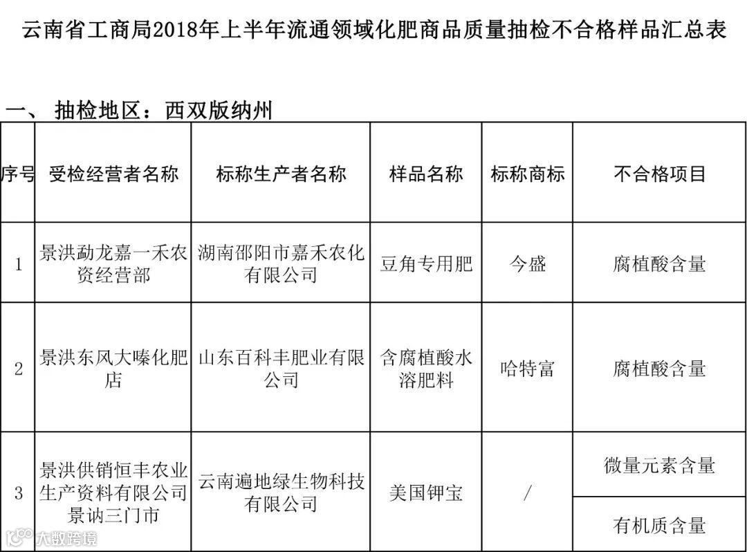 2018年上半年,云南省工商局组织对曲靖、大理、红河、保山、丽江、版纳、德宏7个州市所辖32个县(市、区)的化肥经营者销售的有机肥料、氮肥、磷肥、钾肥、水溶肥料、配方肥料、复肥系列等七个大类360个批次化肥商品进行了质量抽检。经检验,有86个批次化肥商品质量不合格,抽检不合格率为23.89%。其中,据中腐协分析,18家非会员企业含腐植酸肥料抽检21个样品不合格。