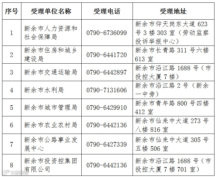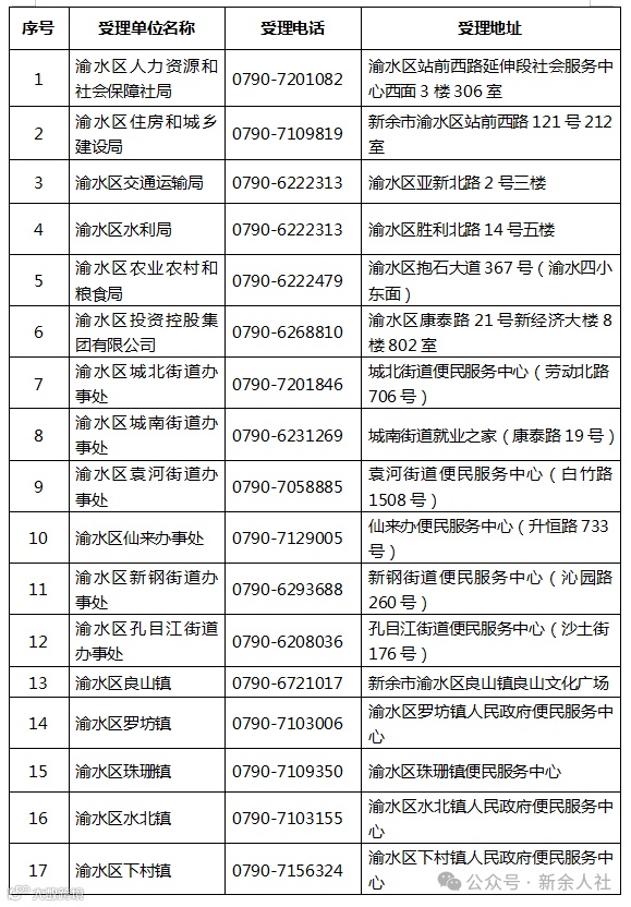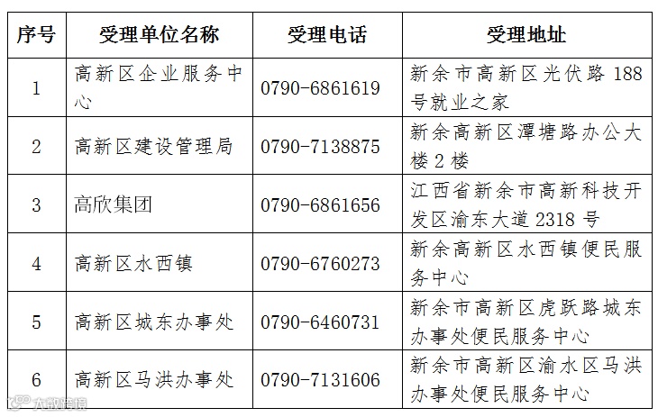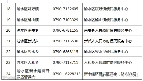(四)渝水区清欠专班受理电话及办公地址