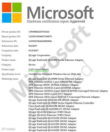 Cavium FastLinQ QL45000/QL41000系列10/25GbE以太网NIC现已通过Microsoft Windows Server软件定义数据中心(SDDC)Premium认证,这是微软最高级别的SDDC认证。微软公司数据中心和云网络、Windows Server集团经理Ravi Rao指出:“软件定义网络、存储空间直通和Microsoft Azure Stack是微软软件定义混合云基础架构战略的核心。SDDC Premium认证可帮助数据中心经理和系统集成商部署Microsoft SDDC技术,利用Cavium以太网NIC的全面特性来构建高效而可靠的超融合数据中心。”