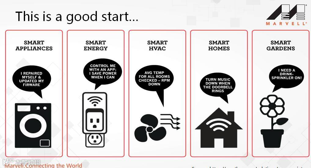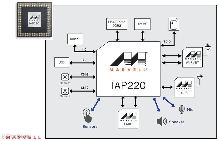 她援引CISCO的预测数据,到2020年会有500亿的设备联网,其主要分布在智能家居、可穿戴设备、车载应用和工业应用等领域。针对这些应用领域,Marvell全新IAP220 SoC系列处理器在诸多性能上得到了优化,提供完整的多媒体支持、内置sensor hub、以及完整的芯片与软件解决方案,支持开发超低功耗连网设备和对带宽要求较高的应用。