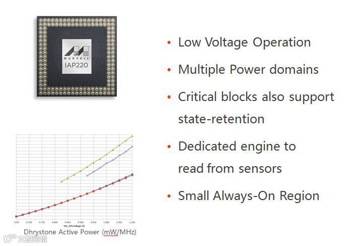 IAP220采用台积电HPC的工艺基于超低功耗的架构,包括低电压工作、多种电源域以及有限的永远在线区(always-on region)。