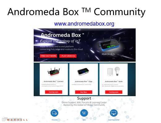 “去年我们公司新增了SEEDS事业部,就是在产品事业部和销售之间增加一个平台支持部门给客户更多的方案选择和支持。”Lance表示。“核心芯片、端到端的平台和生态系统是Marvell Andromeda Box平台三大要素。”所以这个平台把计算能力、连接和云聚合在了一起,方便物联网设计者完成原型设计。