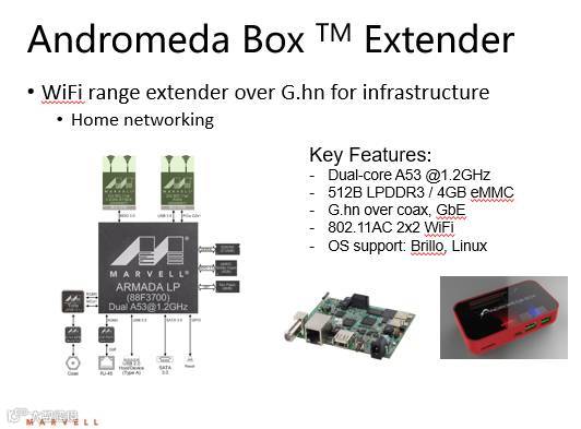 Andromeda Box Extender则是一个WiFi放大器通过G.hn技术扩大WiFi工作范围,也是采用双核A53处理器。