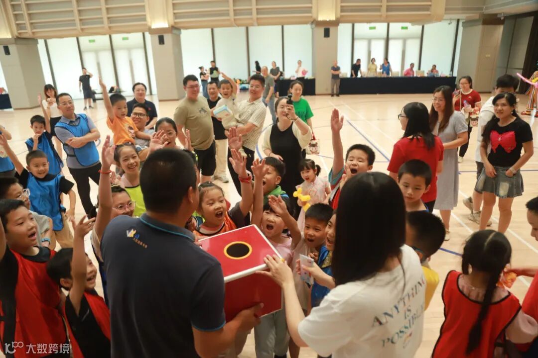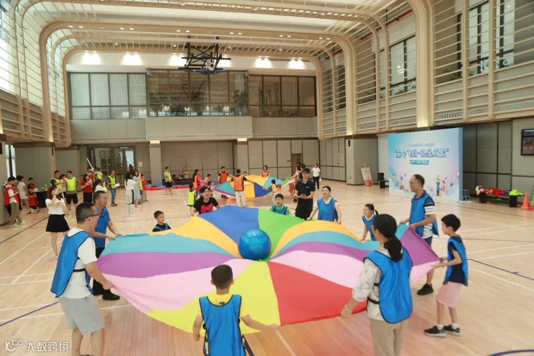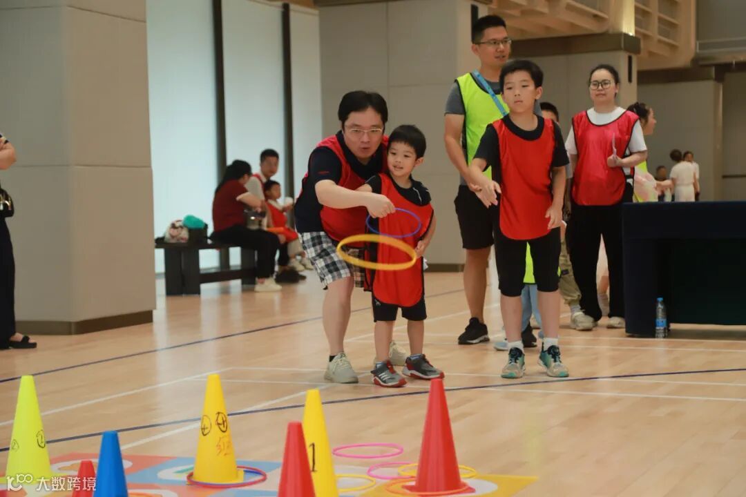 在欢快的音乐声中,亲子活动拉开序幕。教练带领大人、小孩进行了热身运动,并将所有人员分成了四组。“王者战队”“最强王者”“一飞冲天”“牛气冲天”等,各组分别给团队取了名字,信心满满,严阵以待。