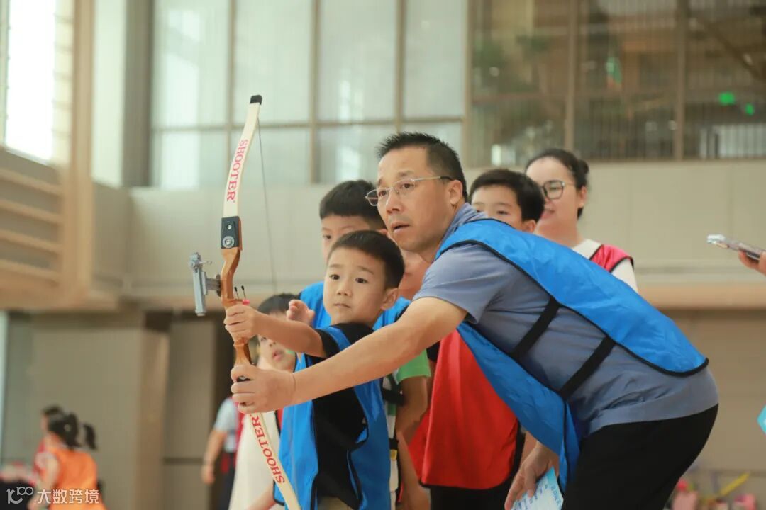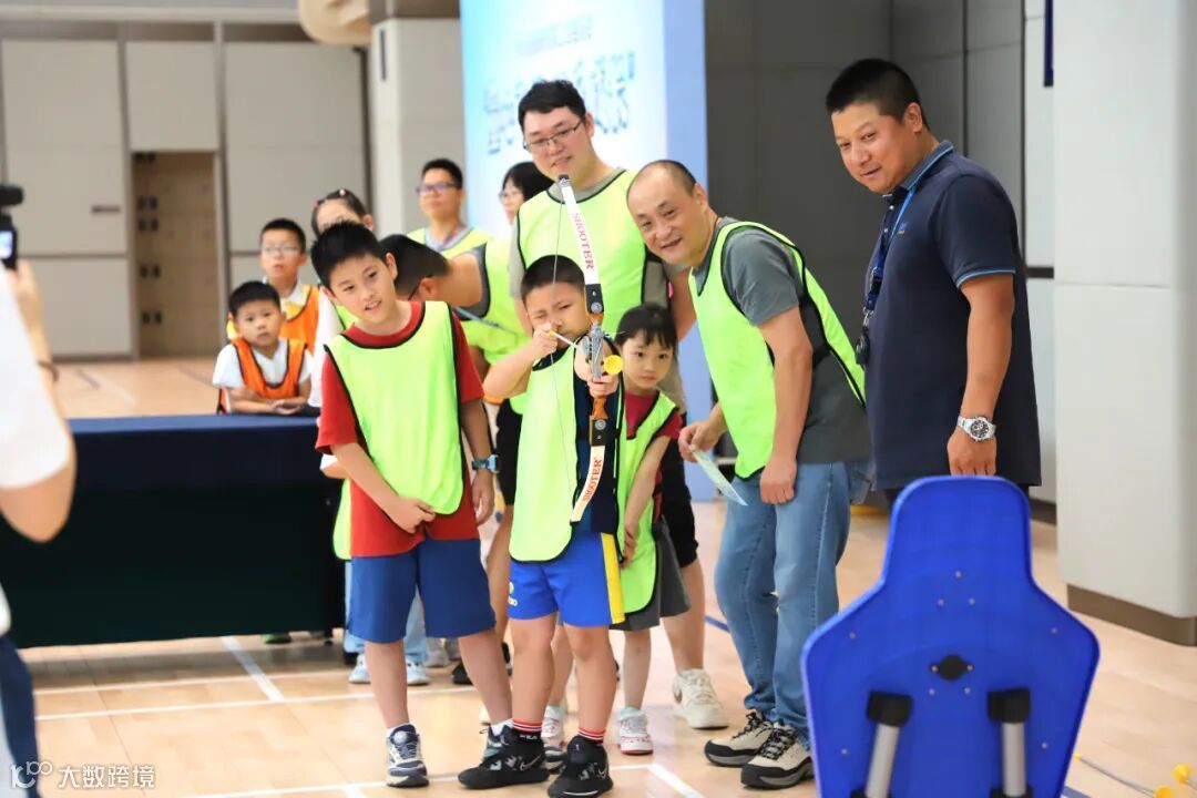 “身体要侧站,虎口搭在下巴上,箭不能对人。”在射箭体验区,大人们向小朋友细致讲解射箭时的身体站姿,挽弓搭箭的技巧。在大人的耐心教导下,小朋友逐渐掌握了射箭的技巧和要领,很多都成了“神箭手”。