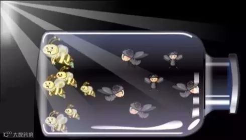 把一些蜜蜂和苍蝇同时放进一只敞口玻璃瓶里,
