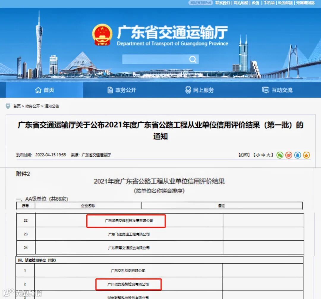 此外,两家公司还分别多次荣获广东省守合同重信用企业、公路建设市场全国综合信用评价AA级企业、公路水运工程建设领域守信典型企业等等,以良好的行业信誉,获得诸多业主和服务对象的认可,成为广东省交通领域技术服务的重要力量。