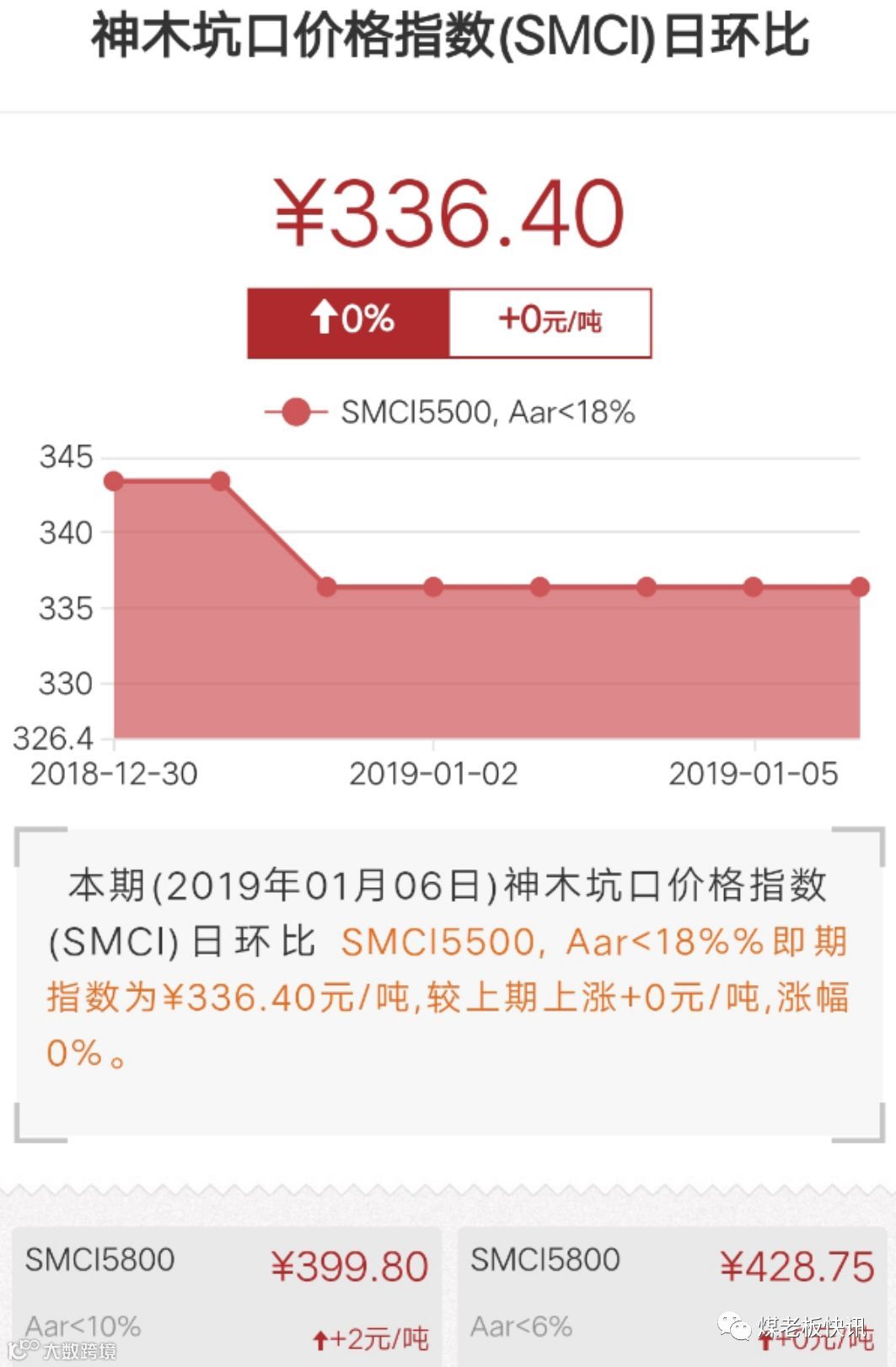 神木市乌兰色太煤矿:1月6日早晨6点面煤涨价20元/吨,执行价格为350元/吨;
