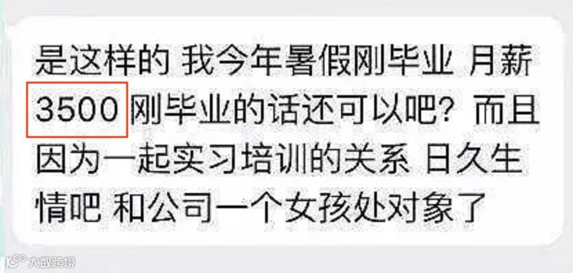 嗯,一个刚毕业的上进青年,月薪3500,不知道学历和所在城市,倒也中规中矩。找到工作的同时,还“收获”了一枚女朋友,事业感情双丰收啊,挺好。