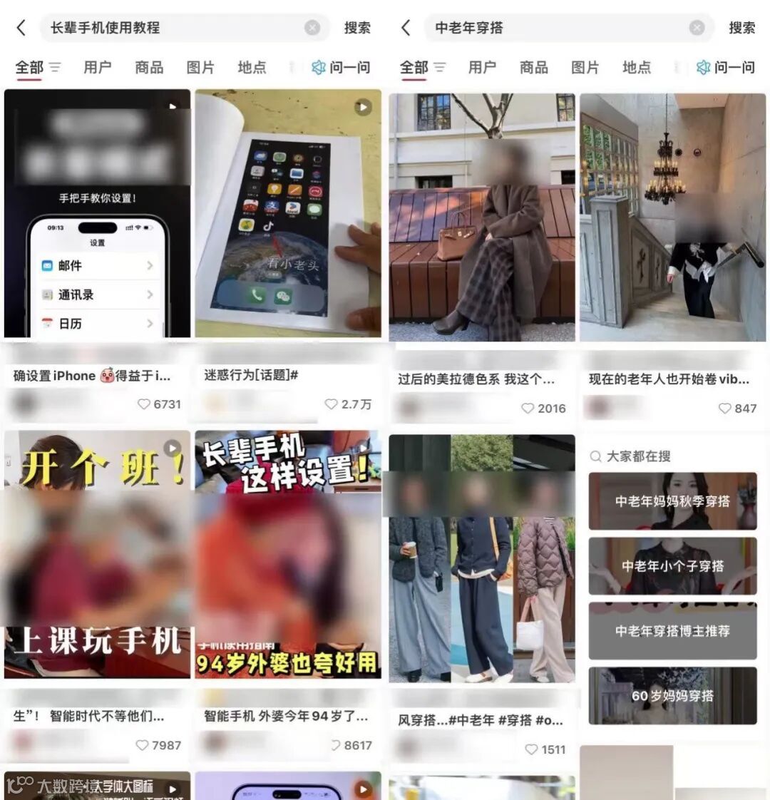 银发刚需:长辈手机使用教学、适老化改造、中老年穿搭,年轻人愿意给父母花钱,这方面内容缺口大。
