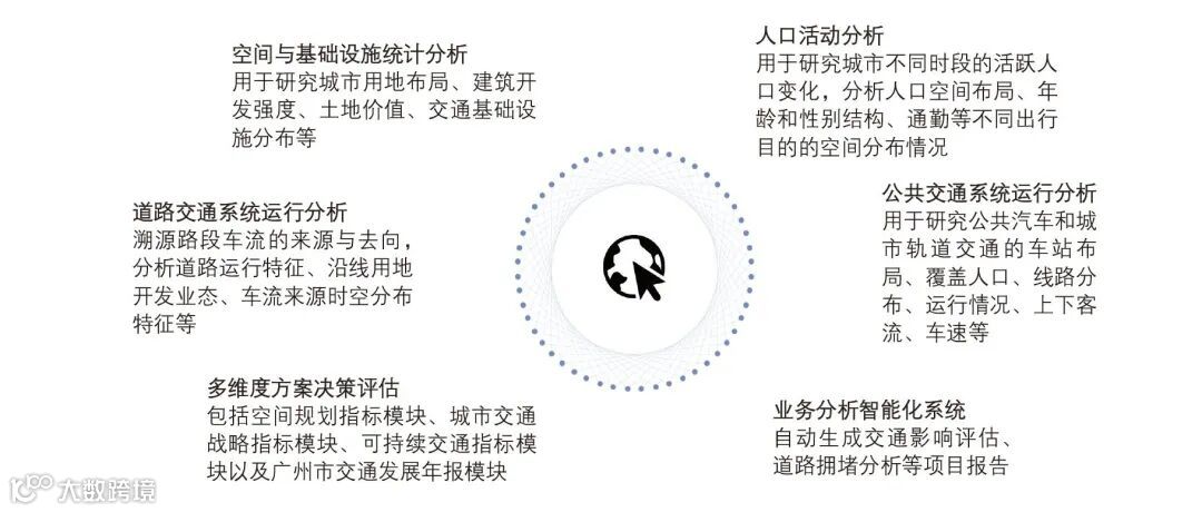 大数据和人工智能等新技术不断迭代为交通规划获得更精细化的数据以及新的分析手段提供了基础。广州市交通规划决策支持平台在传统交通规划模型基础上,升级传统定量分析方法,提升交通规划编制、评估与实施水平,转换形成更具科学的政府决策能力[1]。