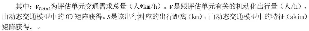 评估单元交通需求总量等于交通出行量乘以出行距离,由于慢行方式出行不会受到交通设施限制,本次交通需求总量计算仅考虑机动化出行[7]。