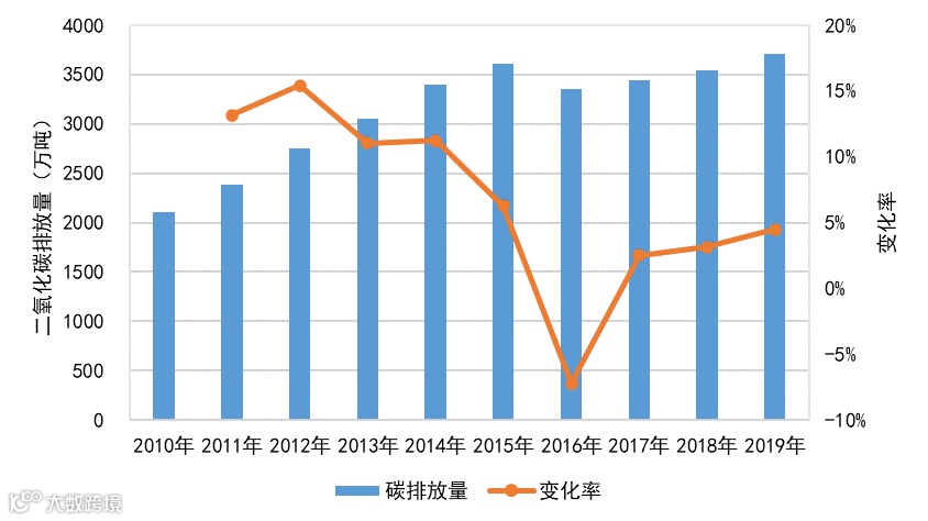 *注:由于2016年统计局对铁路、公路的客货统计口径有所调整,导致二氧化碳排放量2016年比2015年明显下降。