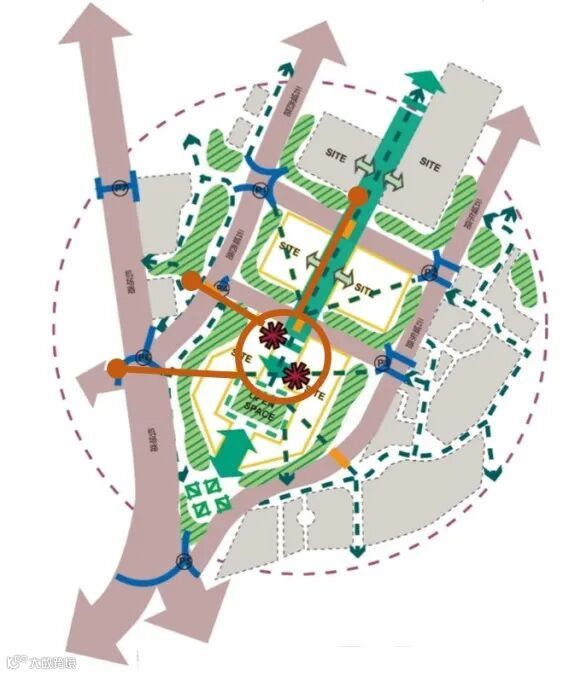 根据主次划分,规划重点解决北部商务商业区、西部棠景片区和地铁站点之间交通联系,论文提出以下策略。