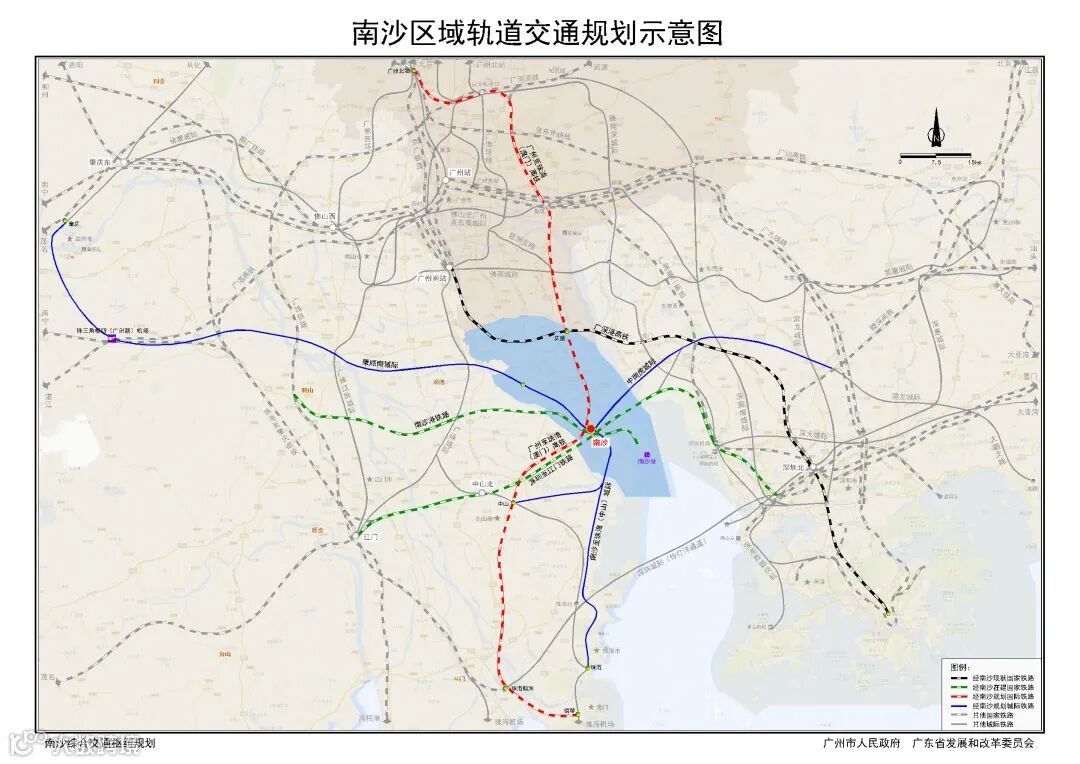 国家铁路及城际轨道新增广州至珠海(澳门)高铁、南沙至珠海(中山)城际,按高铁标准规划建设中南虎城际、肇顺南城际,将深南高铁、赣深客专引入南沙。