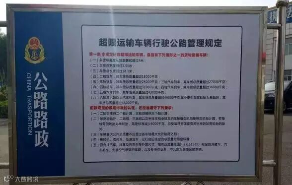 大部分地区的公路路政部门都对新政宣传积极,上图为山西忻州地区新规宣传牌,主要是将新规超载超限标准按条目清晰展示,让广大司机知晓新政执法标准。