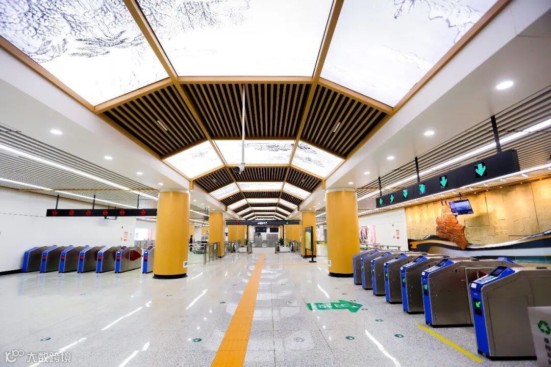 长沙6号线以“繁华潇湘·荣耀新城”为设计理念,提取长沙特色文化及科技元素对全线进行设计,打造了5座文化主题车站: