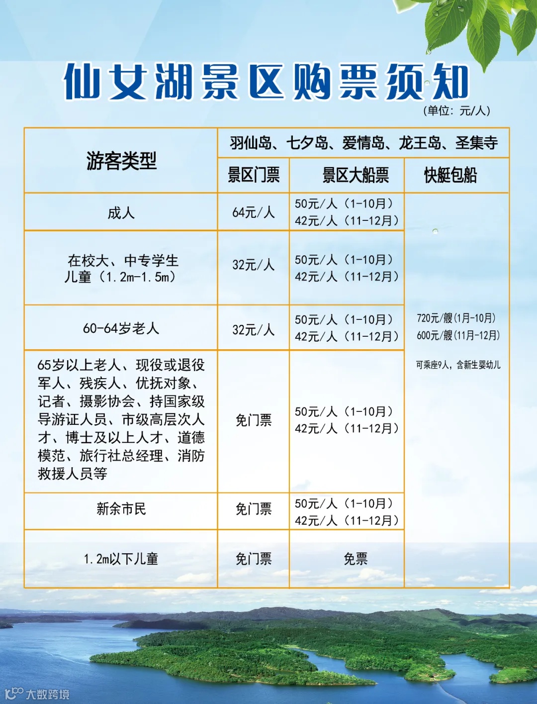 自2025年1月1日起,仙女湖景区对出示《江西省无偿献血荣誉证》或《江西省造血干细胞捐献荣誉证》的“三免优待”对象,实行免购门票(需购船票)。