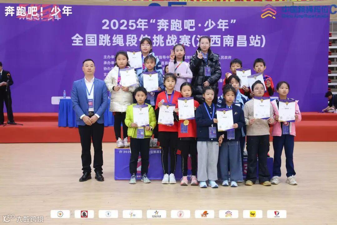 近日,2025 年全国跳绳段位挑战赛(南昌站)圆满落幕。我市选派的 6 名跳绳小将奋勇拼搏、载誉而归,在 17 个参赛项目中斩获 16 个一等奖、1 个三等奖的优异成绩!