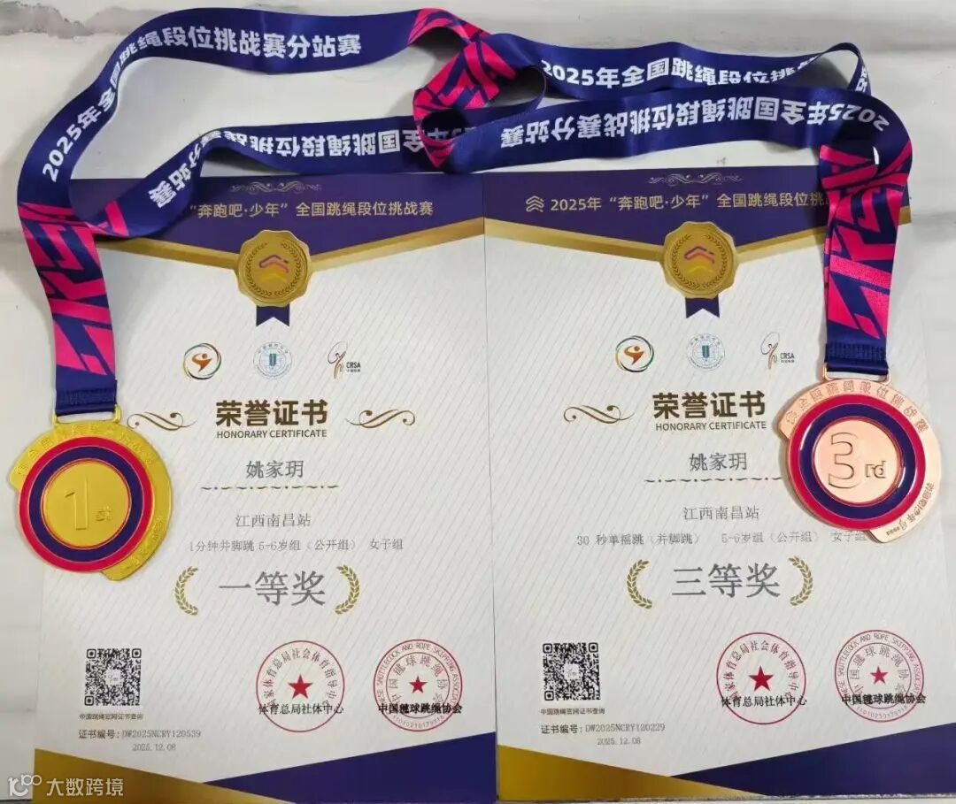 乐在新余近日,2025 年全国跳绳段位挑战赛(南昌站)圆满落幕。我市选派的 6 名跳绳小将奋勇拼搏、载誉而归,在 17 个参赛项目中斩获 16 个一等奖、1 个三等奖的优异成绩!