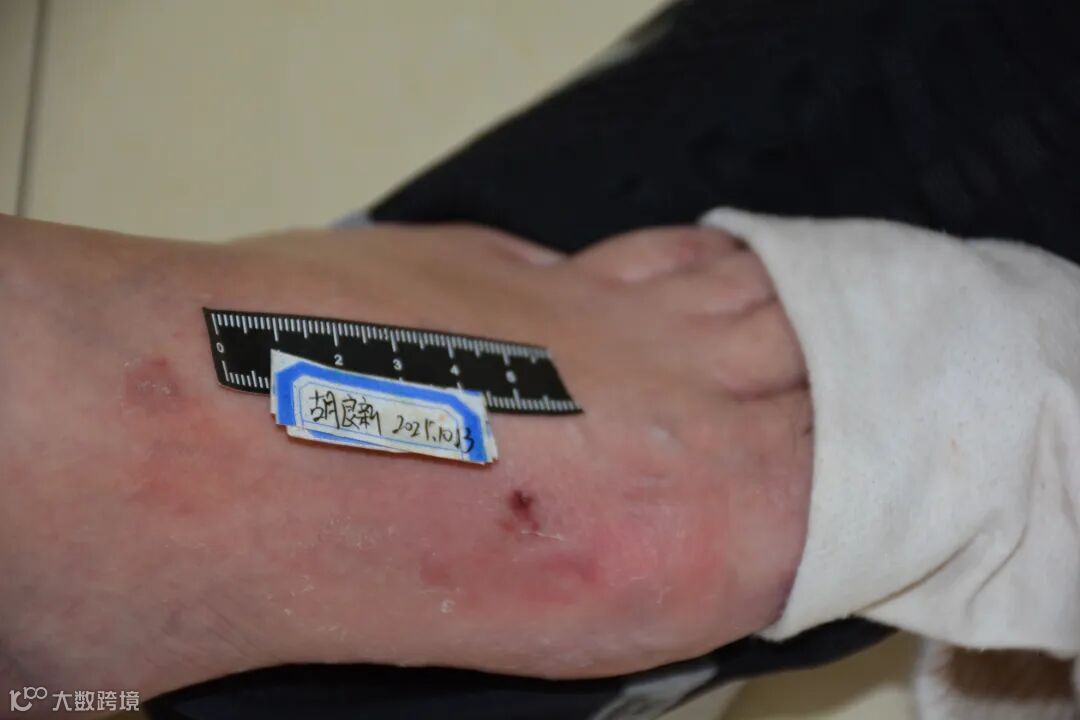 车轮直接碾压在了胡良新左脚上