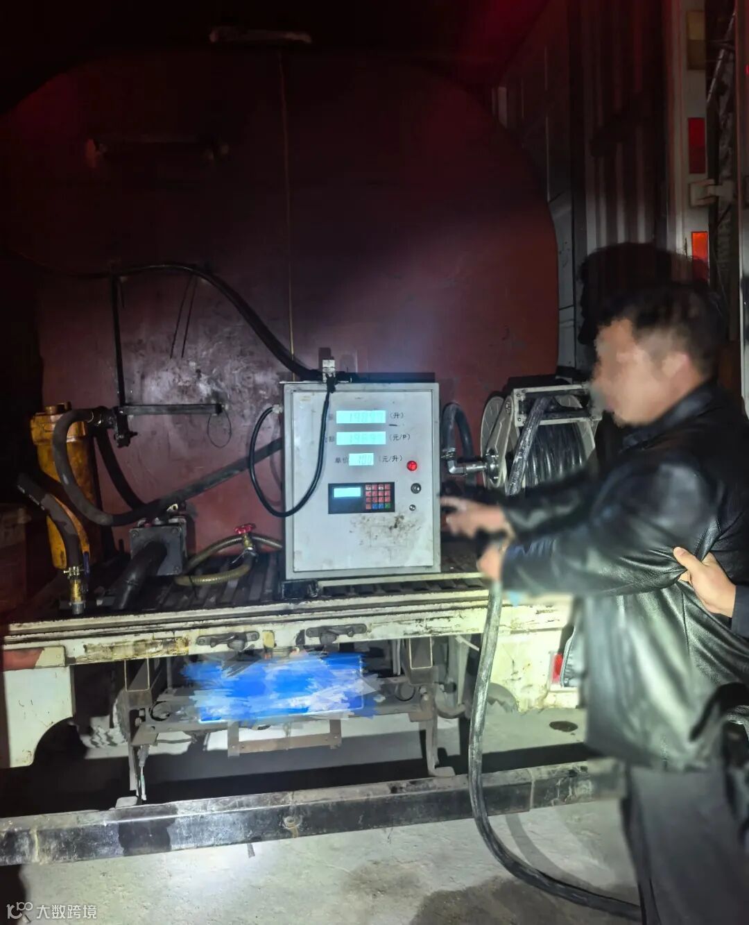 非法柴油加注作业的改装厢式货车