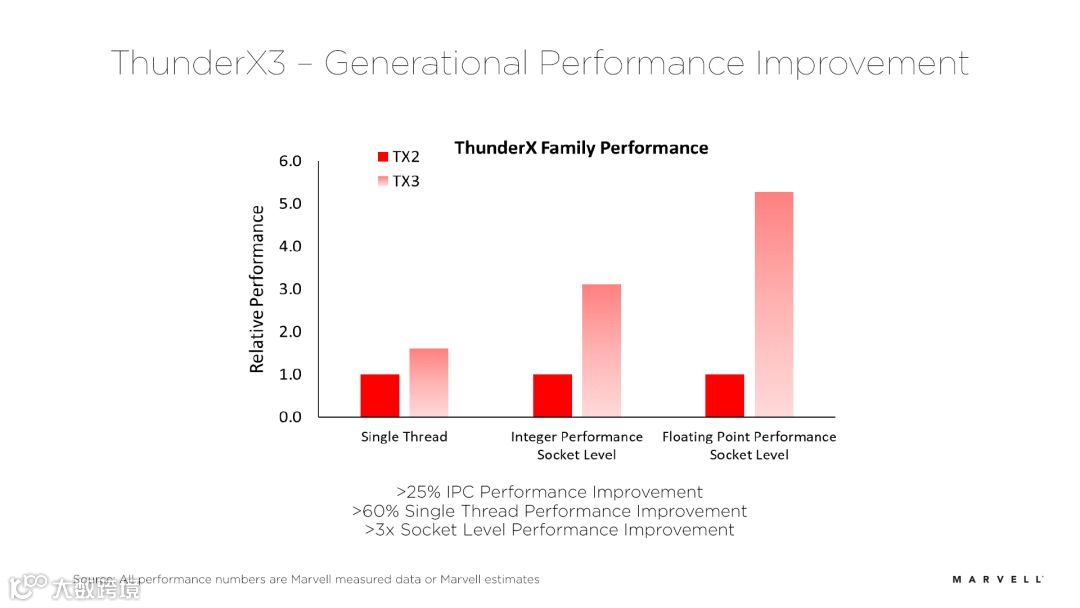 图: Marvell Thunder X3相比Thunder X2在性能上的提升