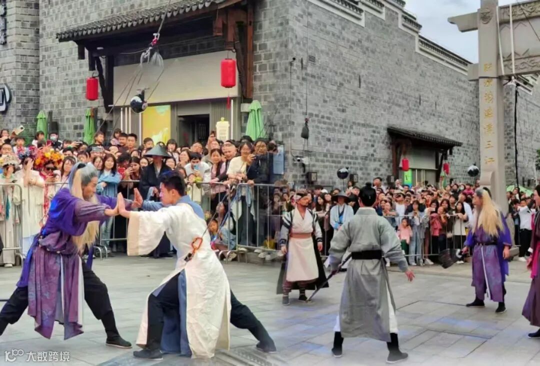 ◎武侠们由禅意广场开始,巡游至中宫祠进行演绎