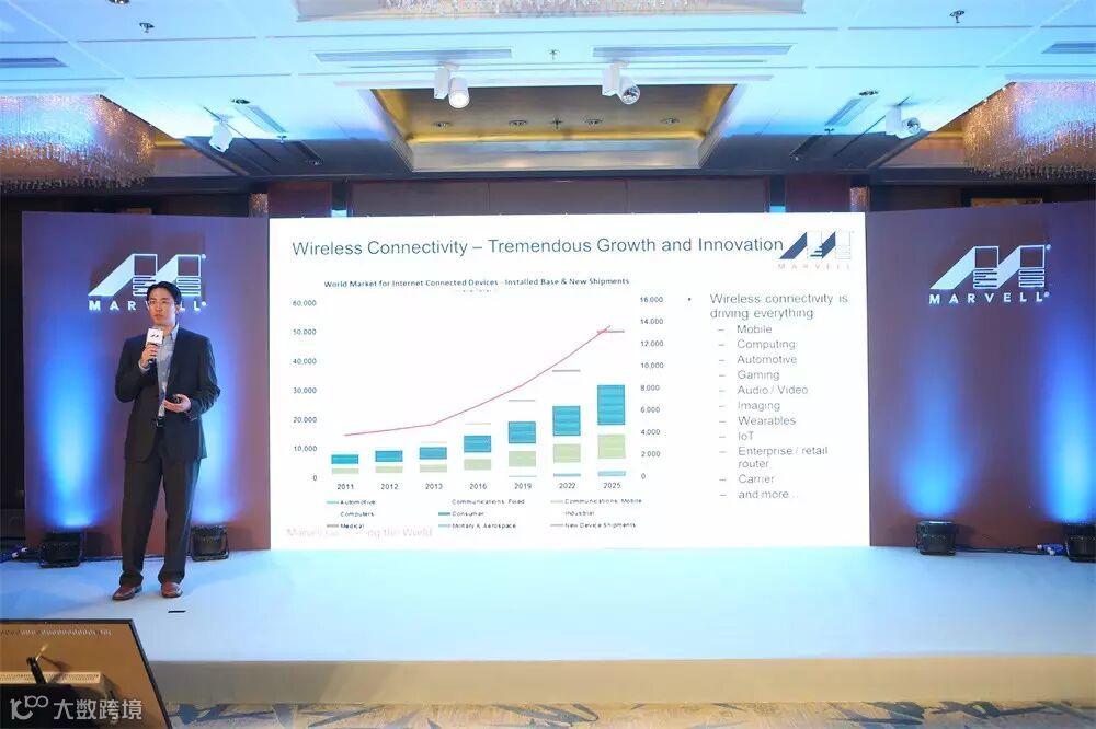 随后Marvell 高级市场总监Kevin Tang 先生向大家着重介绍了Marvell在无线连接技术上成就。随着移动互联网和IoT的不断发展,全球每年的联网设备正在高速增长。更快速的宽带、更稳定的WIFI连接正在变为越来越重要的需求。而在无线连接领域,Marvell绝对可以称得上是佼佼者,几乎在各大产品的主要厂商中都能看到Marvell无线连接解决方案的身影。在无线连接领域,Marvell产品主要涵盖以下六大类别:WIFI、蓝牙、ZigBee、NFC、gps、FM radio。