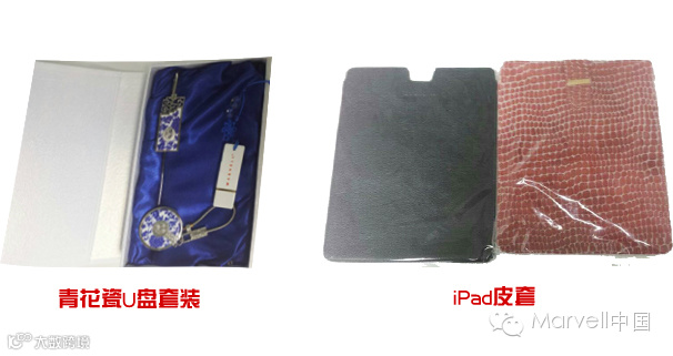 幸运奖(24名,每周抽取8名):关注“Marvell中国” (微信号:Marvell20)微信,即有机会获得价值百元的iPad皮套或青花瓷U盘套装一个(随机寄送)。