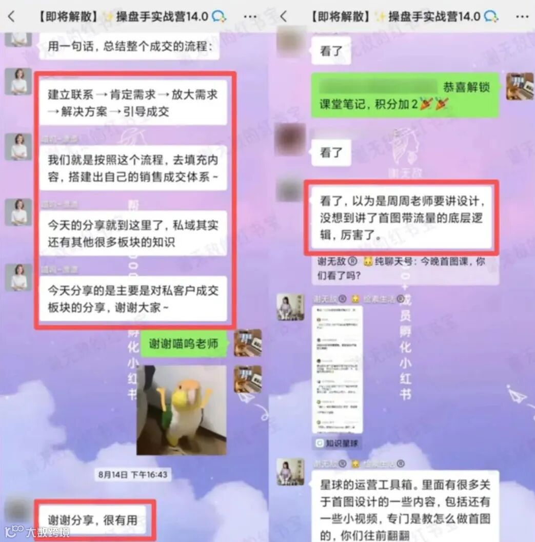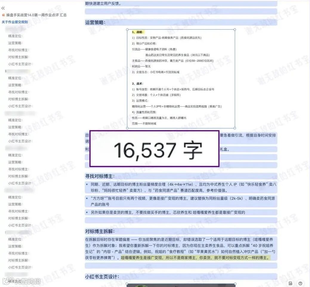 报名实战营后,学了课程,她才明确了账号定位,专门针对家长群体的需求去做笔记,还学会了怎么高效创作笔记,设计出一套 “低价资料引流 - 私域转化高价课程” 的完整流程。