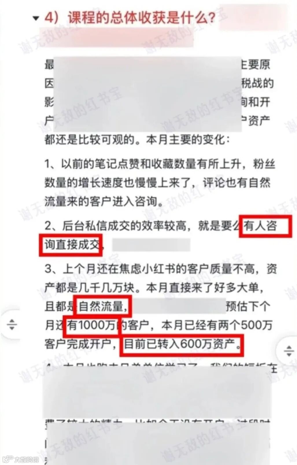 在小红书账号只有 259 个粉丝的情况下,成功引流 50 + 客户,引入资产接近 3000 万呢,成了“低粉高转化”的典型例子。