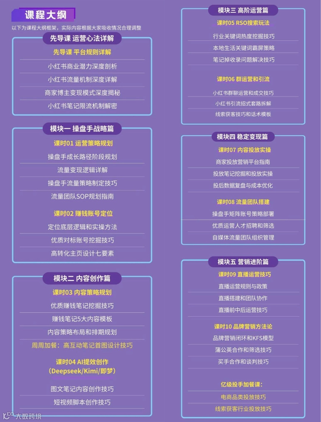 课程里,除了在笔记创作方面,带着大家打造能赚钱的小红书,我还会把小红书之外的各种经验、避坑要点分享给大家,包括企业经营、团队搭建、私域运营以及业绩提升等等,就是想帮更多老板通过小红书获得更大收益,让品牌影响力更强!
