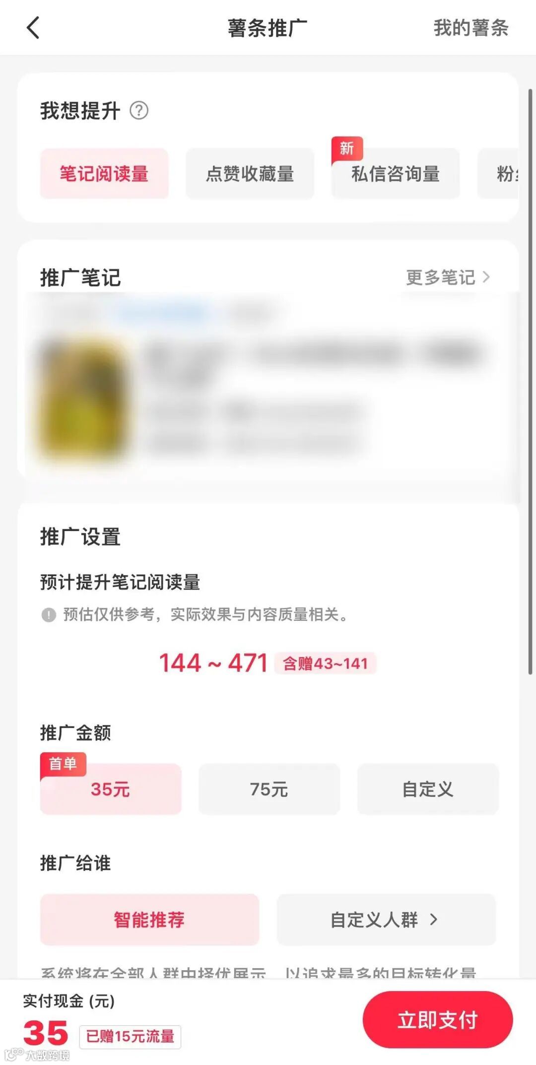 如果笔记数据不好的,可以在薯条推广中可以查看是否限留流,如果是可以正常推广的就说明笔记没什么问题,如下图: