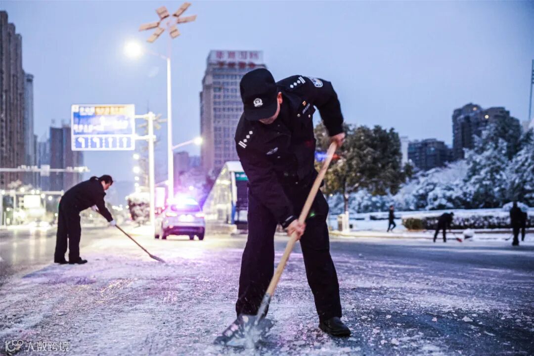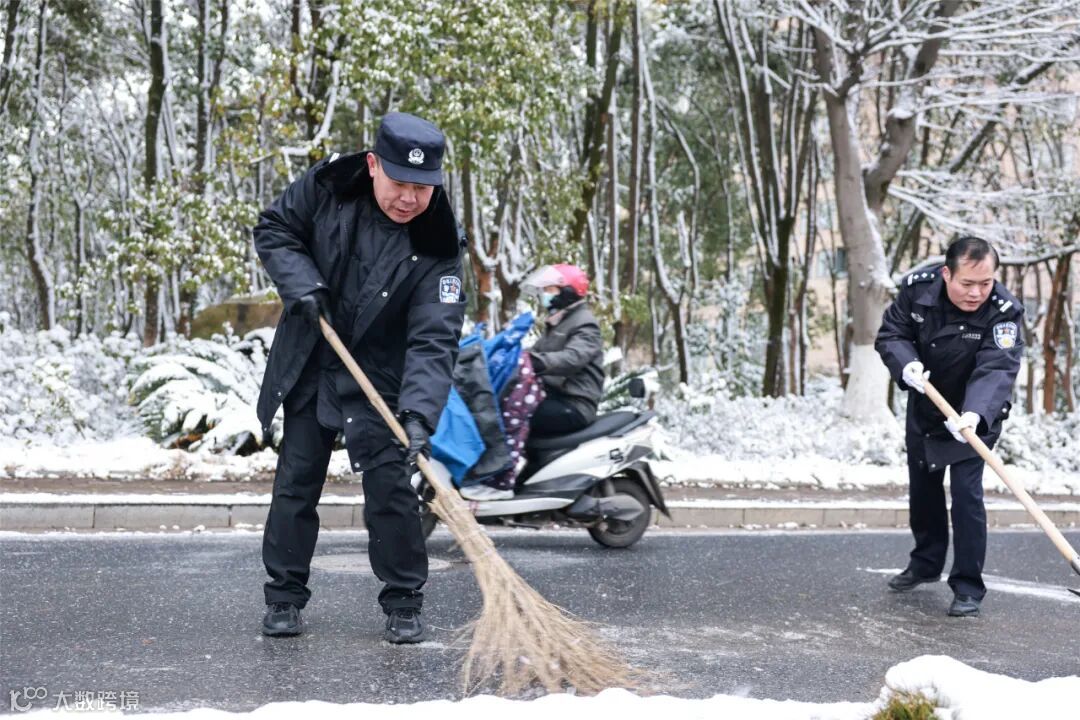 民警们就拿着扫帚、铁锹、簸箕等工具