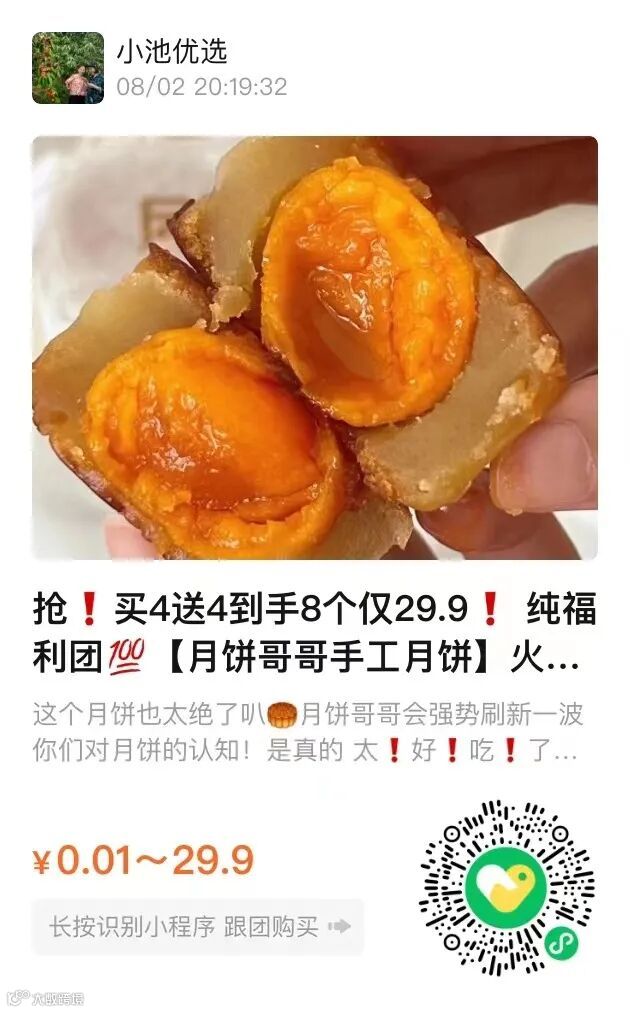 这个月饼也太绝了叭🥮 月饼哥哥会强势刷新一波你们对月饼的认知!是真的 太❗️好❗️吃❗️了❗️ 排队4小时只为吃它!一天销售20万个 长沙的网红月饼可谓一饼难求!👏👏 在直播间一上架就抢空!上团爆卖2500+🔥 今天开团只要29.9秒杀8个‼️还包邮‼️ 4个招牌莲蓉蛋黄月饼➕送4个台式绿豆糕~ 今夏消暑绝美搭配