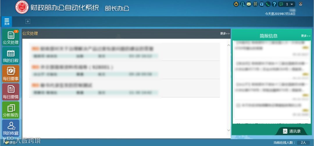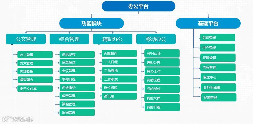 办公平台采用成熟、稳定的技术框架,引入流行的政务云概念,功能上涵盖公文处理、督查督办、会议管理、行政管理、综合事务、协作交流、信息报送、办公助手等典型政务模块,立足于实现行政办公科学化、规范化,协助客户进一步提高工作效率,规范工作流程,同时促进信息资源共享并强化内部控制管理。