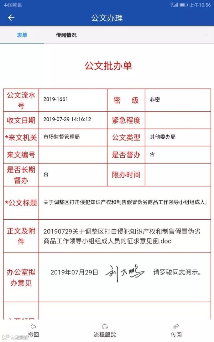 公文处理符合《党政机关公文处理条例》,实现收文、发文、签报不同公文类别间的相互协同,最大程度地提高收文登记、发文拟稿、审批、签发的工作效率,实现一键收文登记、一键公文签发。