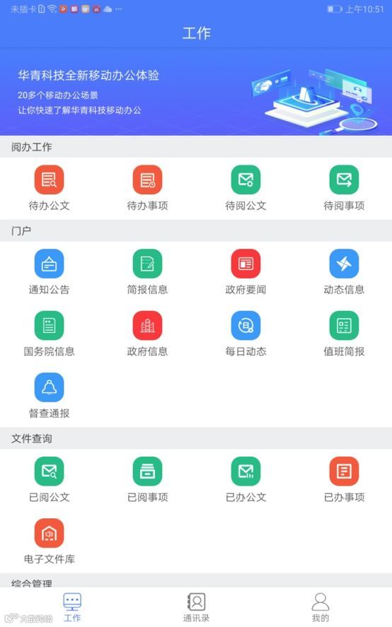 移动端主要办理的业务内容有:公文文件的审批及查询、行政办公业务的流程起草及审批、信息门户中信息的查阅、通讯录、电子邮件等。同时提供单门户、多门户的信息入口,在移动端就可以完成信息的查阅。此外,在移动端完成行政办公事项审批工作的流程发起,如:出国申请、离岗申请、请假申请等业务。
