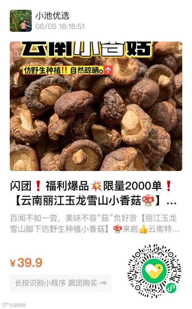 百闻不如一尝,美味不容“菇”负 好货【丽江玉龙雪山脚下仿野生种植小香菇】🍄来啦👍 云南特产,虽然小个,但这种菇肉厚,口感软滑,味道更不得了,太香了😋一口一个👅小孩子很喜欢吃❗️❗️ ✅新鲜采摘,晾晒。由于香菇本身口感滑嫩,干品更是浓香扑鼻。 小香菇的吃法多种多样,各种炒、炖、煮,营养又美味🤤